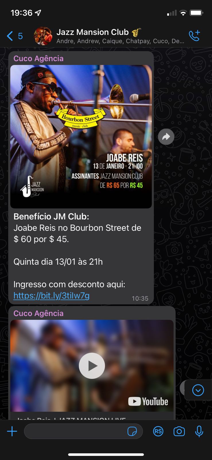 O grupo reúne aquelas pessoas que amam jazz ou querem começar a curtir, mas são as únicas no seu grupo de amigos. A assinatura garante ingresso VIP para curtir shows de jazz inéditos em 3 lugares diferentes toda semana, além de acesso ao nosso grupo oficial no WhatsApp. Você encontrará pessoas que dividem os mesmos gostos que você e poderá encontrá-las em lugares seguros para curtir música e trocar ideia. Todos os membros também contam com benefícios exclusivos na Jazz Mansion, evento que acontece em lugares históricos.